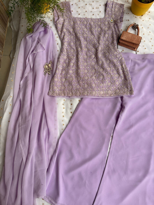 Women Ethnic Embroidered Regular Mirror Kurta with Palazzos