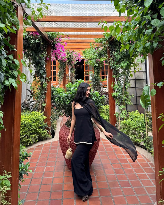 Black Georgette Suit Set for Women | 90s Inspired Party Wear Straight Fit Kurta with Dupatta | Farewell, Sangeet, Wedding & Reception Outfit