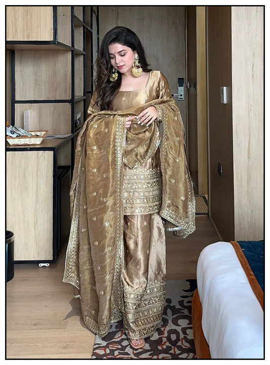 Radiant Rich Sequins Embroidered Designer Gown With Dupatta