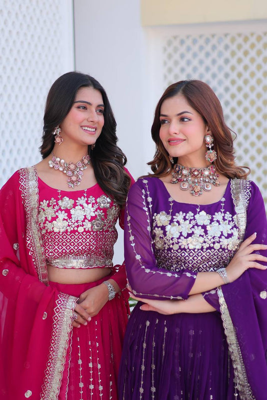 Fabulous Embroidery Sequence Worked Faux Georgette Lehenga Choli