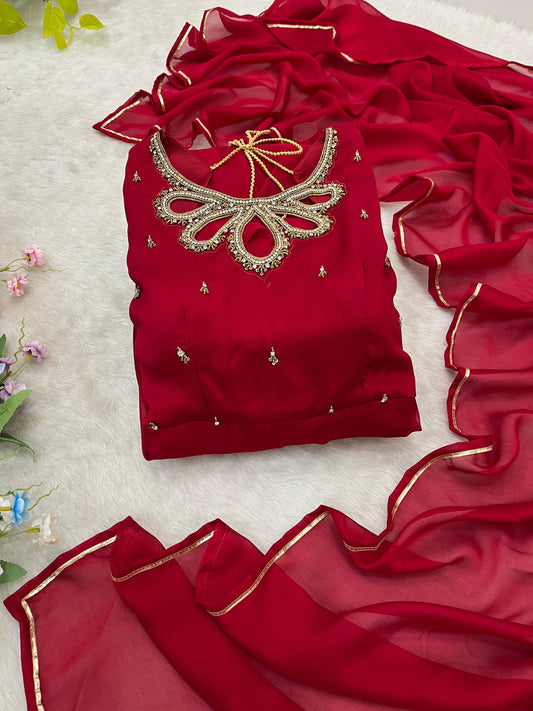 Magnificent Chinon Silk Sequins Embroidered Top Sharara Suit