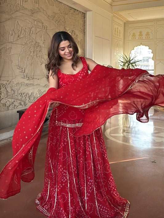 Farewell & Wedding wear Kumkum Red Bandhani Sharara Set for Women