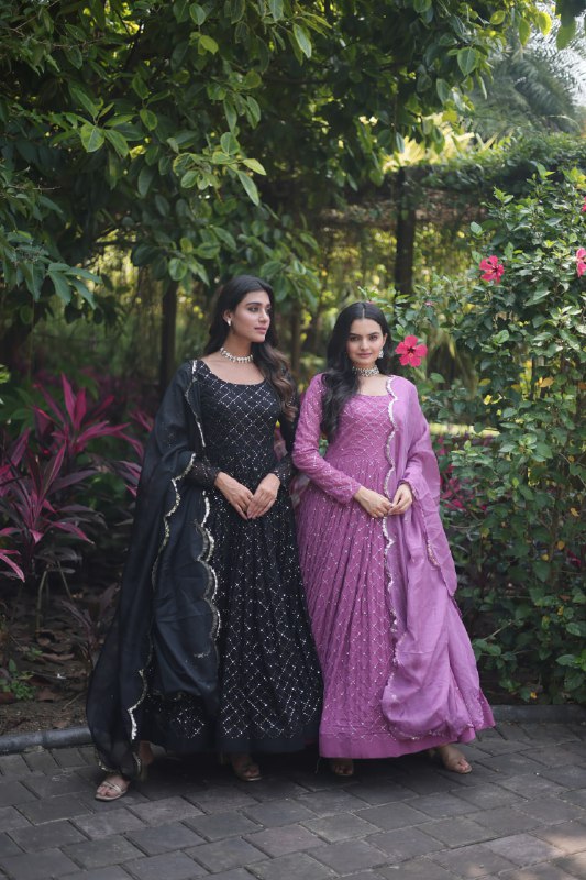 Gorgeous Faux Georgette Zari Sequins Embroidered Gown With Dupatta