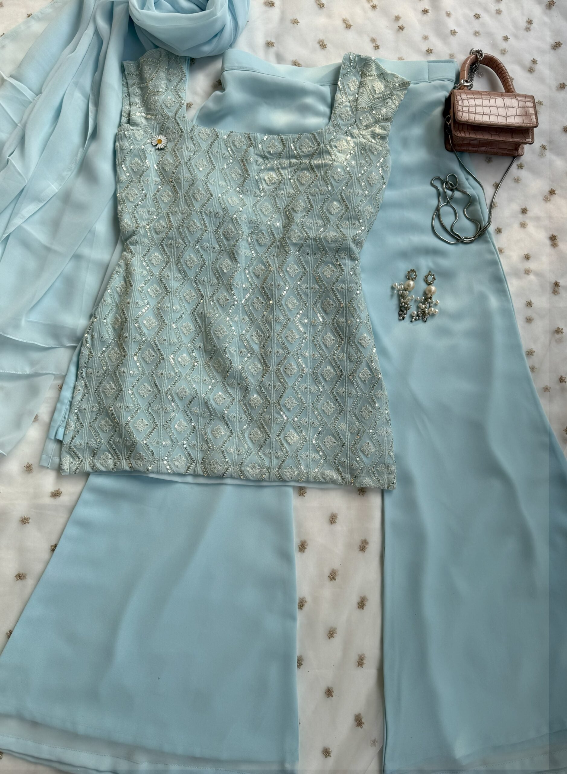 Get ready to channel your inner superstar with this three-piece set that redefines 90s Bollywood glam for the modern era. Inspired by the most iconic celebrity looks, this outfit is a tribute to the era that gave us style, sass, and unforgettable fashion moments.