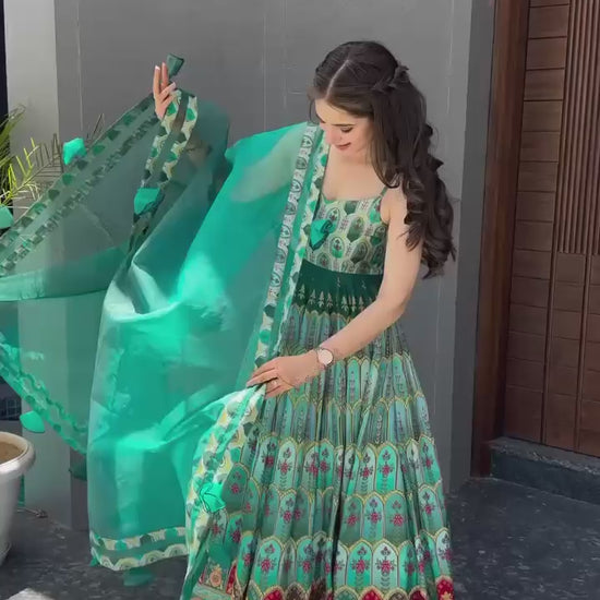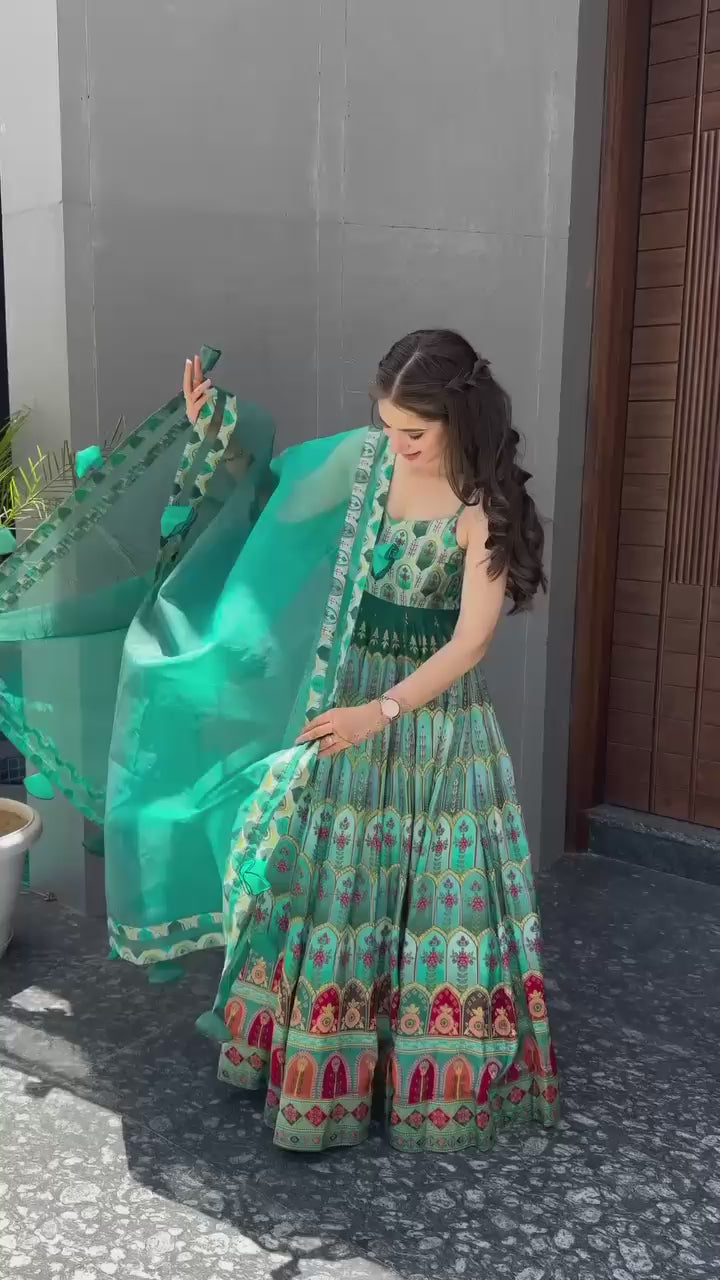 Ravishing Pure Jimmy Organza Silk Digital Printed Gown With Dupatta