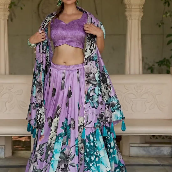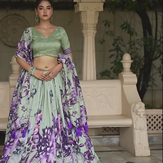 Stylish Tussar Silk Floral Digital Printed Lehenga Choli Set